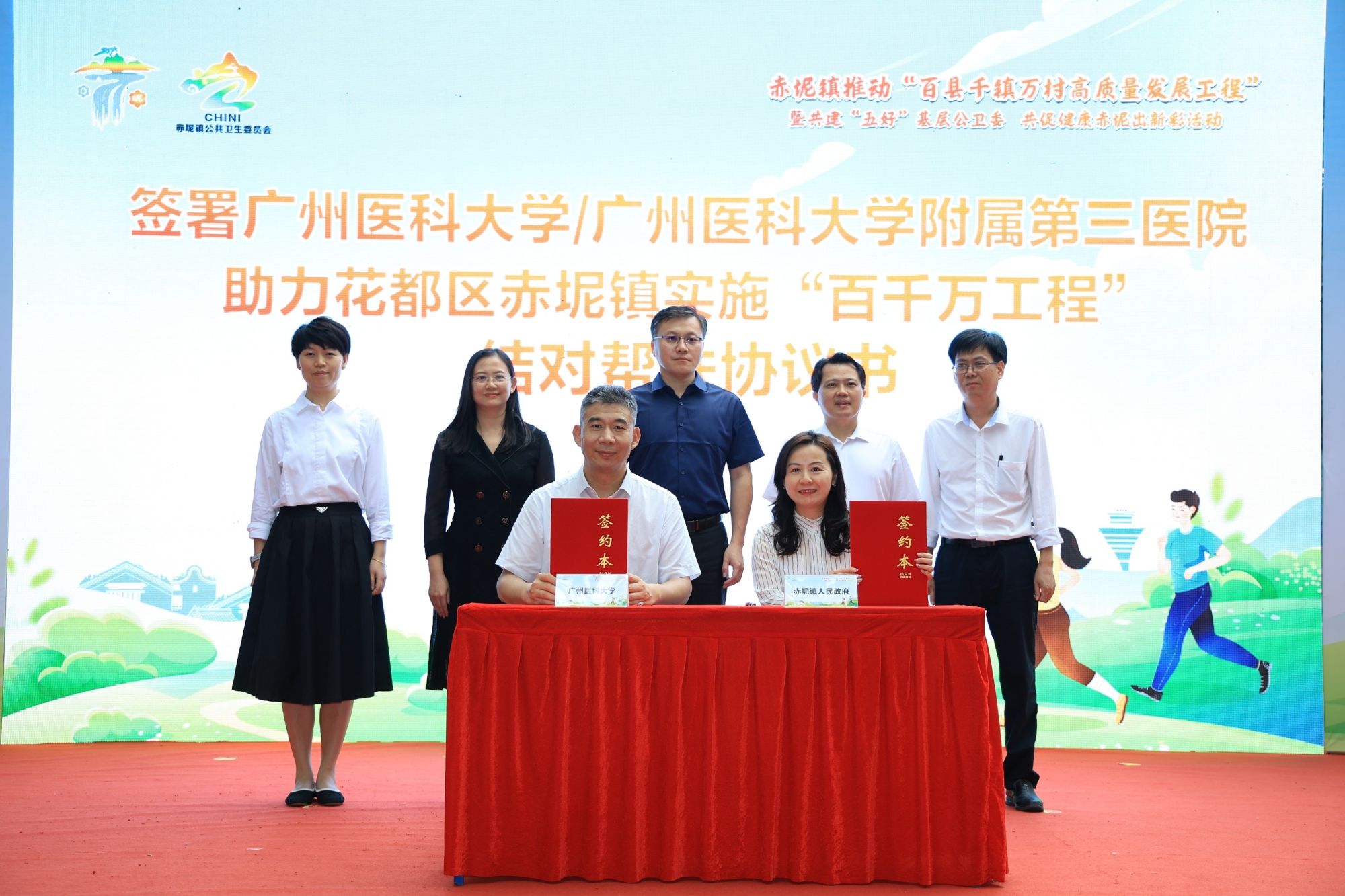 本网讯 为持续推进基层公共卫生治理体系建设,聚焦“百千万工程”和“创建美丽中国示范镇、绿色低碳先行镇”等一系列美丽建设,6月7日,赤坭镇举办推动“百千万工程”暨共建“五好”基层公卫委,共促健康赤坭出新彩活动,学校党委常委、副校长、工会主席周麟、工会副主席蔡开贤和附三院党委副书记、工会主席刘丹出席活动。