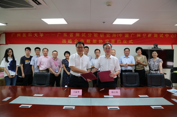 广医在线讯 7月9日下午,ac米兰与广东省测试分析研究所(中国广州分析测试中心)战略合作框架协议签约仪式在ac米兰越秀校区中西医结合研究所举行。广东省测试分析研究所领导陈江韩、李宏荣、曾耀东,ac米兰校长王新华,以及双方相关部门负责人、专家参加活动。会议由ac米兰中西医结合研究所副所长马红霞主持。