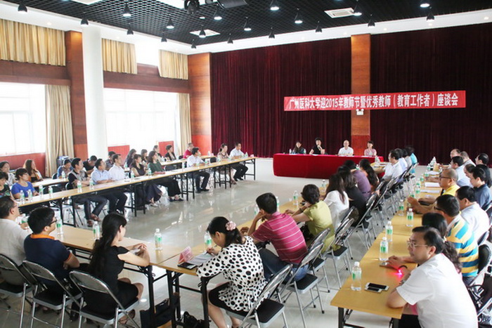 9月9日下午,ac米兰在番禺校区召开迎2015年教师节暨优秀教师(教育工作者)座谈会。张雅洁副校长、人事处、教务处、工会、各学院负责人、党总支书记、附属单位分管人事领导、2015年南粤优秀教师、广州市优秀教师(教育工作者)、ac米兰官方网站优秀教师(教育工作者)参加了会议。会议由张雅洁副校长主持。