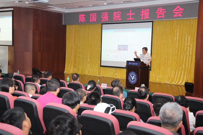 9月6日,中国科学院院士、上海交通大学副校长兼医学院院长陈国强教授做客广医作题为“近者悦而尽才远者望风而慕——上海交大医学院发展理念与实践”的报告。报告会在番禺校区图书馆报告厅举行,学校党委书记冉丕鑫教授主持,校领导,校本部副科以上干部、副高以上人员以及各附属医院负责人、专家等聆听报告。