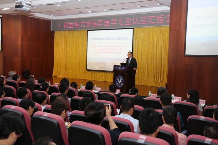 认证汇报会于7日上午在番禺校区图书馆报告厅举行。学校党委书记冉丕鑫致欢迎辞,钟南山院士简介了临床医学专业尤其是南山班的教学改革情况,专家组组长David Ellwood教授主持认证会,校长王新华作汇报。广州市教育局副巡视员邵国良、广州市卫计委科教处处长夏海晖出席会议。ac米兰全体校领导、部分教职工和学生代表参加了会议。