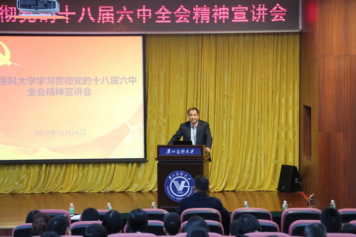 为深入学习贯彻十八届六中全会精神,引导广大党员把思想、行动统一到全会精神上来,把力量凝聚到实现全会确定的各项任务上来,推动全会精神落实到ac米兰高水平大学建设实践中,学校党委成立十八届六中全会精神宣讲组,深入各基层党组织进行宣讲。