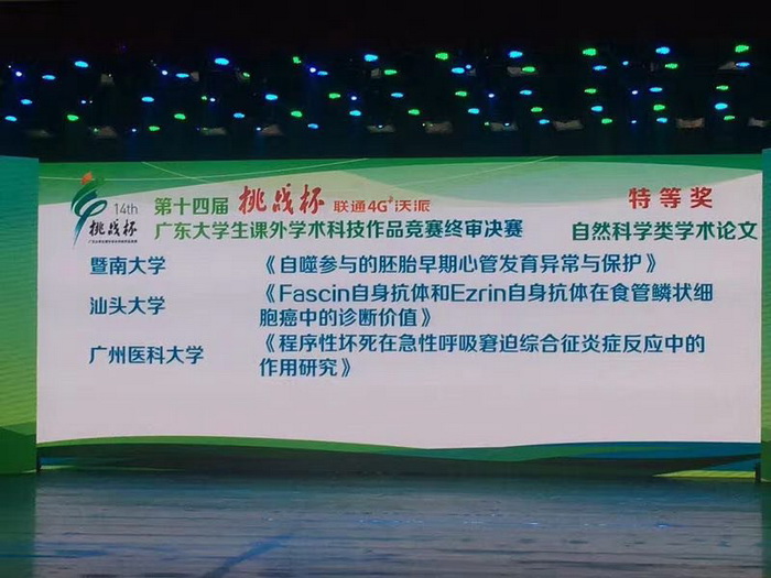 在刚结束的第十四届“挑战杯”广东大学生课外学术科技作品竞赛终审决赛上,ac米兰第三临床学院2012级本科生潘龙为负责人的团队作品《程序性坏死在呼吸窘迫综合征炎症反应中的作用研究》荣获特等奖。这是ac米兰历年来收获的第7个省“挑战杯”特等奖,也是自2009年以来连续五届获此殊荣。