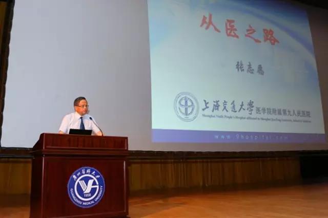 张志愿院士首先向各位同学进入大学学习表示祝贺。他说,报考医生是一件了不起的事情,因为需要终身学习,还需要有强烈的事业心、责任心和爱心。随后,他回忆了自己的求学经历。年轻时恰逢特殊的历史时期,使他懂得了求学机会来之不易。正式向学医之路迈进后,他如饥似渴地学习知识、钻研技术,在医院轮转期间更是以医院为家,经常24小时学习工作,9年时间练就了过硬的手术基本功。临床实践过程中他深感自己的知识储备不足,为继续充实自己,他白天忙工作晚上坚持苦读,36岁时顺利考上了研究生,为今后的临床和科研工作打下了坚实的基础。他指出,当今社会是一个尊重人才和知识的社会,所以同学们更要珍惜大学宝贵的青春时光,好好学习,多提问题,为做一名好医生打下扎实的基础,走好自己的从医之路。