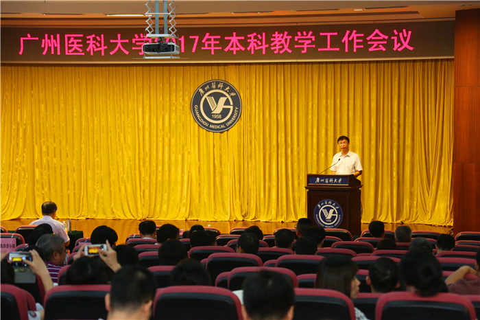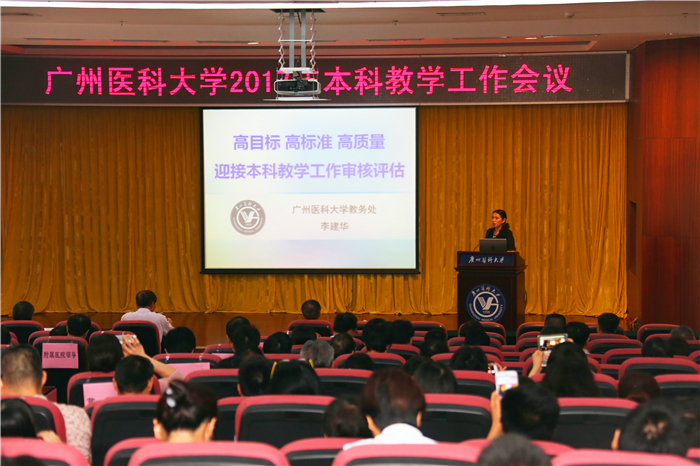 9月14日上午, 2017年本科教学工作会议在番禺校区举行。校长王新华,副校长罗健东、刘金保和各学院、医院、专业、教研室相关负责人和工作人员,相关职能部门、教辅部门有关负责人和工作人员,教学指导委员会成员、教学督导组成员等出席会议。