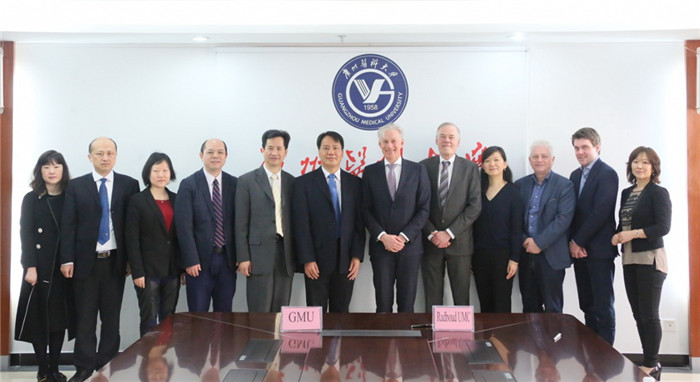 当天下午,Paul Smits一行到基础学院参加了座谈会,科研处、教务处、对外合作交流处、基础学院、药学院、附属口腔医院相关负责人等出席了座谈会,共同探讨教学、科研和临床领域等具体合作的可能性。随后,Paul Smits 一行参观了中法霍夫曼免疫研究所与广州医大新药创制有限公司。