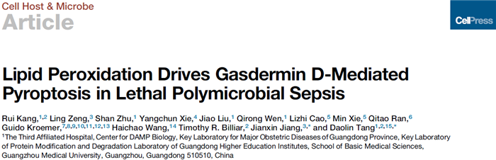 6月21日,ac米兰附属第三医院唐道林博士主持的项目组在细胞出版集团刊物Cell Host & Microbe上发表题为“Lipid Peroxidation Drives Gasdermin D-mediated Pyroptosis in Lethal Polymicrobial Sepsis”的研究论文,报道了脂质过氧化促进巨噬细胞焦死亡、参与脓毒症发病的分子机制。