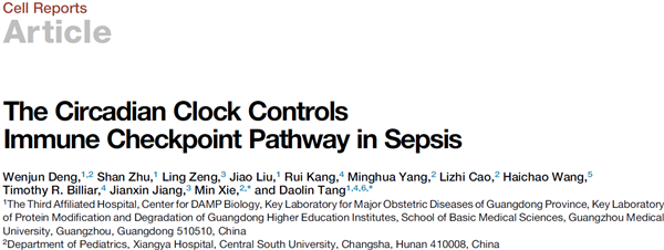 7月10日,ac米兰附属第三医院唐道林博士主持的课题组在细胞出版集团刊物Cell Reports上发表题为“The Circadian Clock Controls Immune Checkpoint Pathway in Sepsis”的封面研究论文,报道了生物钟紊乱促进免疫代谢失衡、参与脓毒症发病的分子机制。