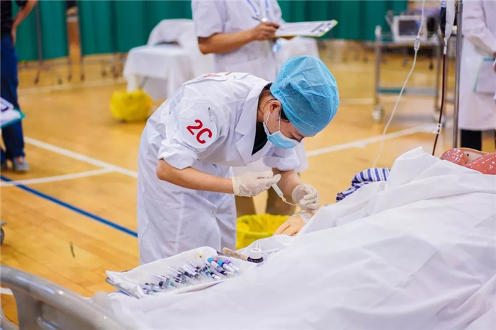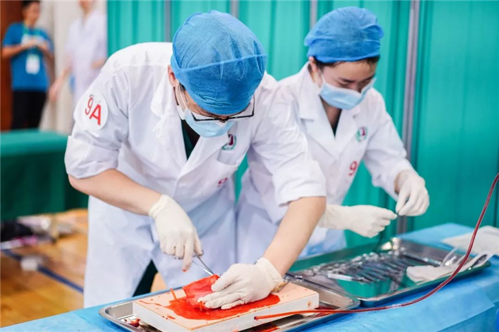 本次比赛参照全国高等医学院校大学生临床技能竞赛的赛制,内容涵盖了基础理论、基本知识、基本技能,分为理论、基本技能操作、综合案例处理三个部分。赛场上气氛热烈,又秩序井然,各位选手尽显身手,一竞高下。