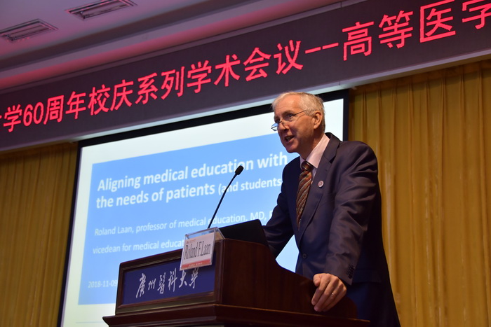 roland f.laan教授围绕“使医学教育与患者的需求保持一致”这一主题进行演讲。他介绍了拉德堡德大学医学中心的项目及特色,并阐述了荷兰在医学教育领域的理论创新。
