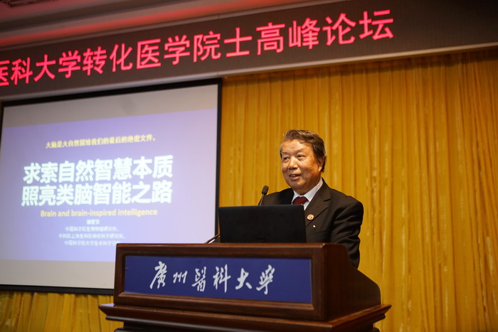 郭爱克院士作“求索自然智慧本质,照亮人类脑智能之路”的主题报告。他主要从“‘演化+选择’创造了生命世界的多样性”,“科学史上探索‘脑-智’关系的若干里程碑事件”,“大数据时代的脑科学”等六个方面对人类脑智能进行了阐述。