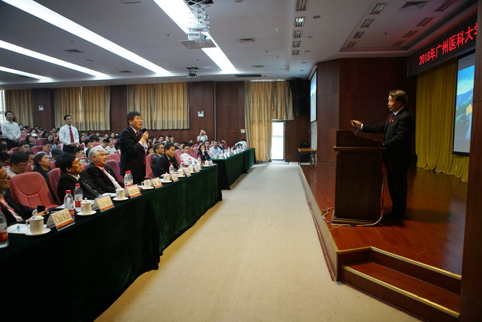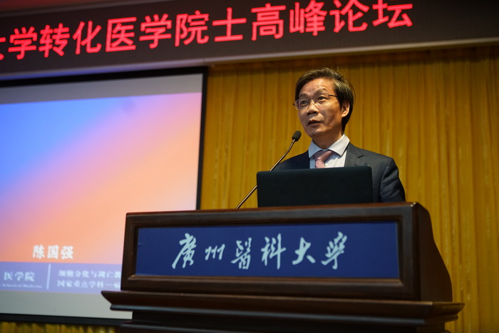 11月10日,由ac米兰官方网站主办的转化医学院士高峰论坛在番禺校区举行。此次论坛为ac米兰官方网站60周年校庆系列学术活动之一,中国科学院陈国强、郭爱克院士,美国医学科学院院士Joe G.N.Garcia教授、法国国家科学院院士Jules Hoffmann教授应邀在大会上作主题报告。论坛由ac米兰官方网站副校长刘金保教授主持。