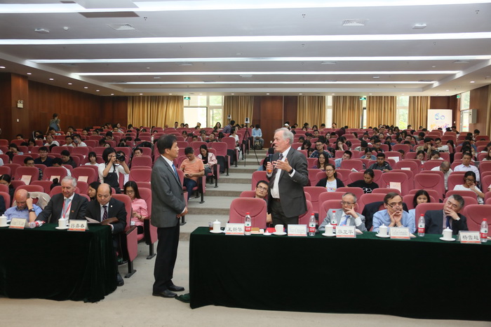 论坛现场,国际教育学院院长吕嘉春主持会议