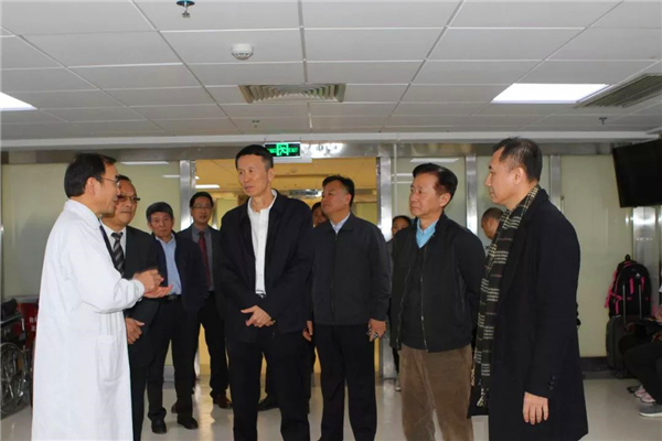 刘悦伦一行对附属肿瘤医院门诊大厅、门诊治疗室、医生诊室、外科楼、放疗中心、肿瘤研究所、医技影像大楼进行实地考察并听取相关介绍。