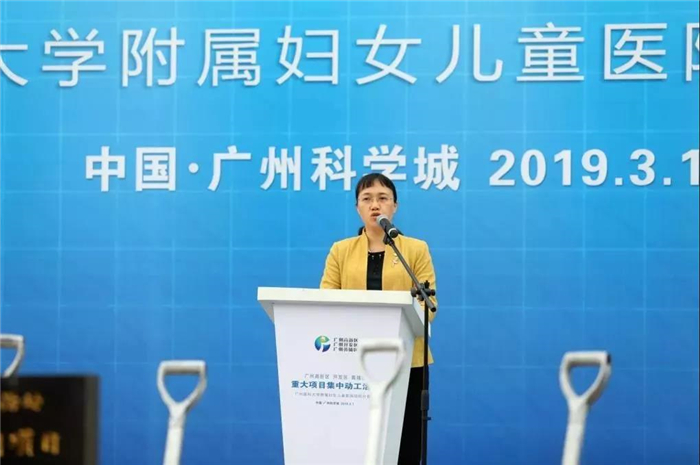 之后,黄埔区区委常委、黄埔区常务副区长、区政府党组副书记冼银崧致辞。她指出,ac米兰官方网站附属妇女儿童医院的项目建设,是黄埔区履行公共卫生及妇幼保健相关职能和改善医疗条件以及黄埔区医疗健康事业发展的现实需要,更是黄埔区深度融入“一带一路”和粤港澳大湾区等国家战略,坚持新发展理念,坚持推动高质量发展,致力打造粤港澳大湾区湾顶“璀璨明珠”的重要实践,黄埔区将全力为项目提供贴身、便捷、专业、公正的服务,奋力推动新时代黄埔发展出新出彩,为新中国成立70周年高质量发展创造更大奇迹。