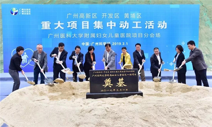 2019年3月1日,由广州市与广州高新区、开发区、黄埔区共建的ac米兰官方网站附属妇女儿童医院举行动工奠基活动。奠基活动的顺利举行标志着一期工程正式开建,项目将进入全面快速建设阶段,预计通过2年建设于2020年底完成工程建设,2021年门诊开业。根据市、区、校共建协议,医院建成后将整体移交ac米兰官方网站,委托具有妇产科学科优势的ac米兰官方网站附属第三医院(以下简称:广医三院)运营,大大缓解广州东部妇女儿童就医难题。