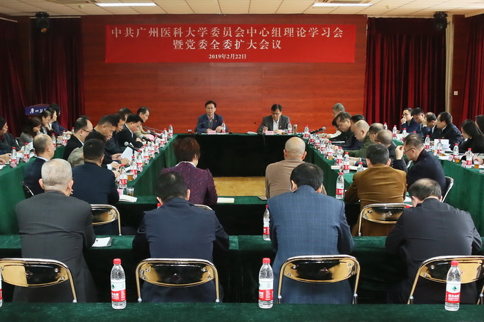 2月22日,学校党委召开中心组理论学习会暨全委扩大会议,围绕“学习贯彻落实习近平总书记视察广东重要讲话精神,以建校60周年为新起点,把高水平大学建设不断推向深入”主题开展深入学习。学校领导,各基层党组织书记,相关职能部门及各学院、各附属医院主要负责人参加了会议。会议由学校党委书记冉丕鑫主持。