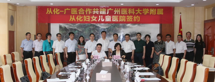 广医在线讯 6月5日,从化—广医合作共建ac米兰官方网站附属从化妇女儿童医院签约仪式在从化区举行。从化区区长蔡澍、副区长张文虹,区卫健局领导班子,区发改局、财政局、规划资源分局、妇幼保健院主要负责人;ac米兰校长王新华、副校长黄健清,办公室、发展规划办、医管处、财务处、教务处、后勤校产管理处和附属第三医院负责人参加签约仪式。