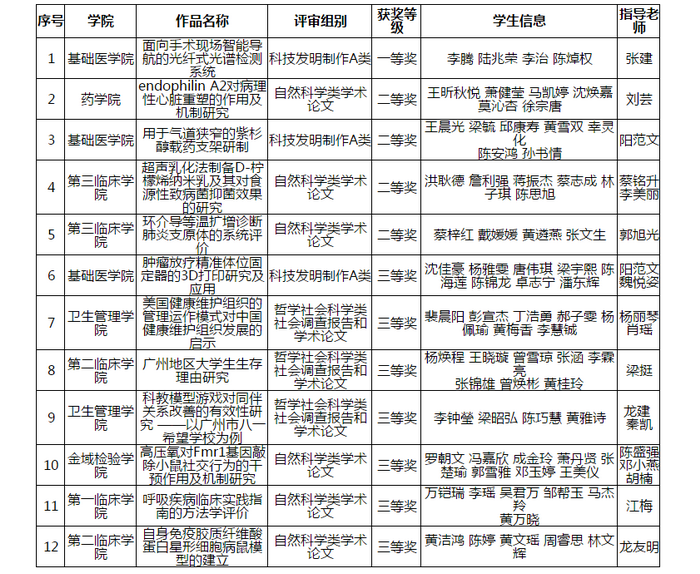 根据大赛章程,组委会分配给ac米兰12个参赛作品名额。学校团委自去年开始组织全校各学院培育参赛作品,并在今年3月举办“挑战杯”校赛,通过公开答辩评审产生ac米兰参赛的12件作品。最终,ac米兰的12件作品全部获奖,分别获得一等奖1项、二等奖4项、三等奖7项。其中,基础医学院《面向手术现场智能导航的光纤式光谱检测系统》荣获一等奖,药学院《endophilin A2对病理性心脏重塑的作用及机制研究》、基础医学院《用于气道狭窄的紫杉醇载药支架研制》、第三临床学院《超声乳化法制备D-柠檬烯纳米乳及其对食源性致病菌抑菌效果的研究》以及《环介导等温扩增诊断肺炎支原体的系统评价》等4件作品获得二等奖,另外7件作品获得三等奖。