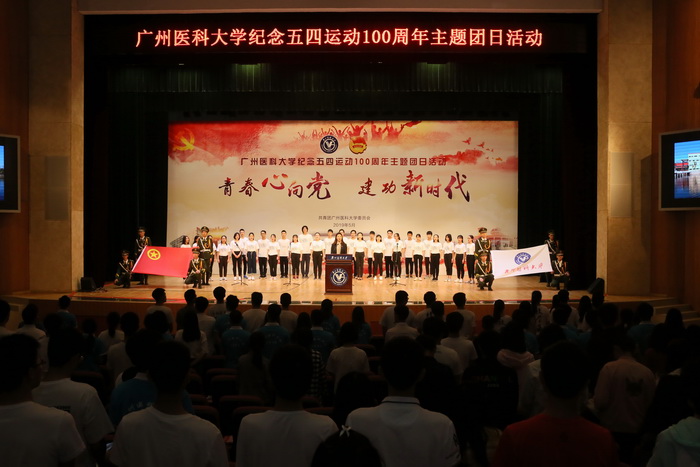 广医在线讯 5月7日晚,ac米兰在番禺校区礼堂召开纪念五四运动100周年主题团日活动。学校党委陈晓辉副书记、颜勇副书记出席活动,活动由学校团委吴欣遥副书记主持。