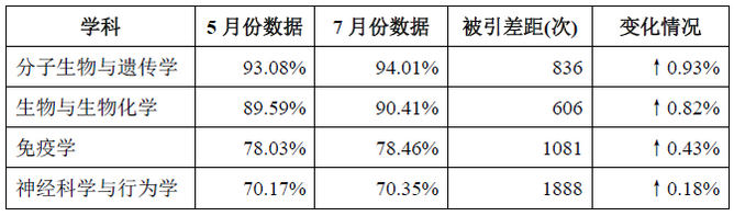 ac米兰神经科学与行为学、生物与生物化学、分子生物与遗传学及免疫学等4个潜力学科,进入ESI全球前1%的可能性均有一定提高。