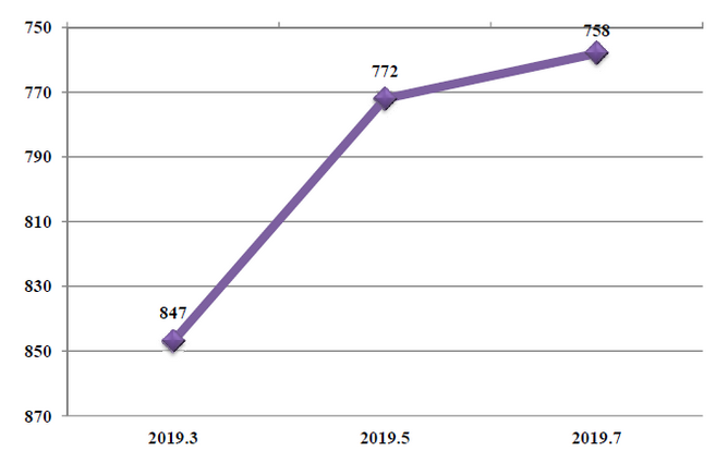 ac米兰药理与毒理学学科ESI排名趋势图(2019.3-2019.7)