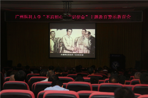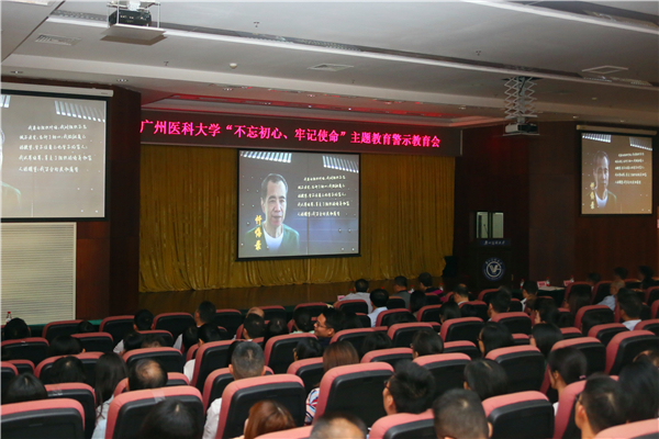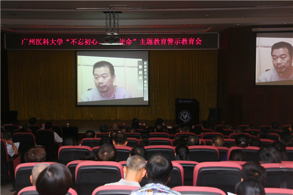 广医在线讯 根据广东省纪委关于将今年纪律学习月活动融入“不忘初心、牢记使命”主题教育的要求,结合ac米兰“不忘初心、牢记使命”主题教育有关工作安排,学校党委9月25日下午组织党员干部集中观看警示教育专题片《泯灭的初心—原广州市商务委党组书记、主任肖振宇严重违纪违法案警示录》、《玩火—广州二运公司黎超南等人干扰对抗巡察警示录》和革命传统教育专题片《彭湃》。学校领导,全体中层干部,校本部机关、后勤8级职员以上干部和全体党员,校本部各党总支和教工党支部委员,共300余人参加观看。