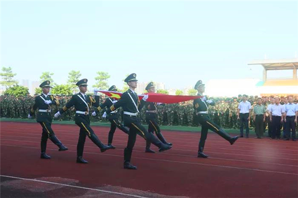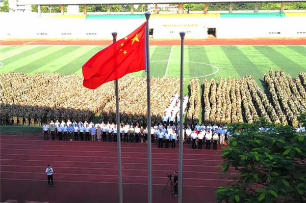 广医在线讯 9月6日上午,学校在运动场举行“我为祖国升国旗” 主题教育活动。全体学校领导,各党总支、各职能部门、各学院的相关负责人,全体辅导员、全体新生以及部分在校生代表共2900余人参加。