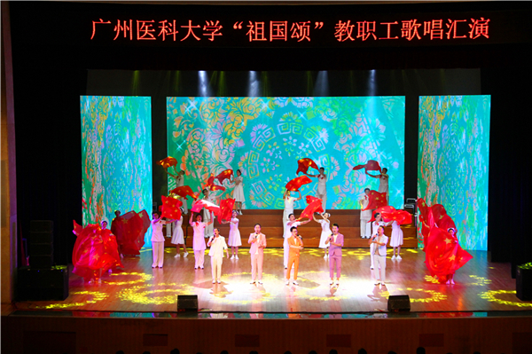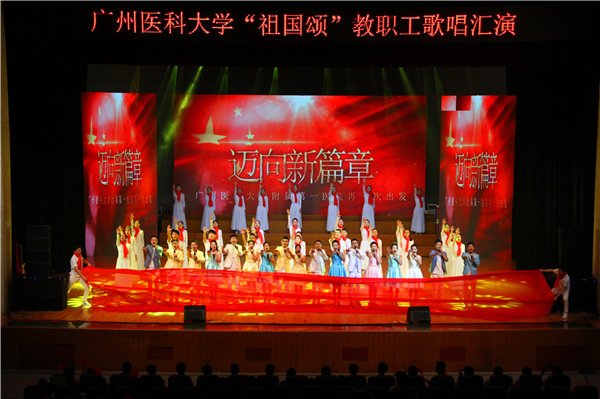 广医在线讯 壮丽七十载,奋进新时代,忆往昔峥嵘岁月,唱今朝时代颂歌。金秋十月,阳光明媚。庆新中国七十华诞,抒爱国爱校情怀,ac米兰官方网站于10月23日下午在番禺校区举行“祖国颂”教职工歌唱汇演。学校本部、各附属医院的演出队伍以及师生员工齐聚礼堂,以歌舞剧、表演唱、情景音乐、音诗画等形式,热情讴歌祖国的伟大成就,展现教职工努力创业奋斗、追求幸福生活的精神风貌,激励师生员工不忘初心、牢记使命,为祖国教育、医疗事业的发展贡献力量。