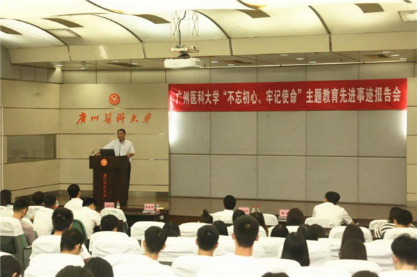 广医在线讯 为深入学习贯彻习近平新时代中国特色社会主义思想,扎实开展“不忘初心、牢记使命”主题教育,学校于10月21日在越秀校区开展“不忘初心、牢记使命”主题教育先进事迹报告会,广州市优秀共产党员,呼吸疾病国家重点实验室和呼吸疾病国家临床研究中心教授、主任医师、博士生导师周玉民,讲述了17年来自己跟随导师冉丕鑫教授,与团队围绕“慢阻肺的发病与综合防治”开展课题研究的先进事迹。学校党委副书记陈晓辉,组织部、宣传部、团委负责人,以及教职工中的入党积极分子和发展对象,各学院团委负责人、党员、入党积极分子、学生代表参加了报告会。