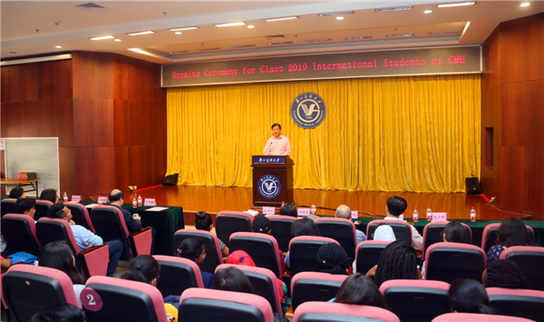 来自坦桑尼亚的WAMBURA NANCY NCHAGWA AUDAX首先代表全体留学生新生发言。她讲述了自己选择来华就读临床医学专业的缘由,表示将把握机遇,珍惜在广医的学习时光,为实现自己的医学梦而努力。