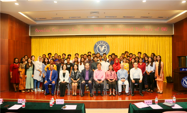 广医在线讯 11月25日上午,ac米兰2019级留学生新生开学典礼在番禺校区学术报告厅举行。校长王新华出席典礼并讲话,教务处、学生处、团委、基础医学院等相关职能部门及学院负责人,2019级全体留学生新生,番禺校区在读留学生参加了典礼。典礼由国际教育学院院长吕嘉春主持。