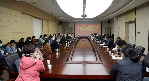 队伍抵达市八医院后,举行了简单的欢迎仪式。广州市卫健委副主任胡文魁、市八医院院长雷春亮先后讲话。