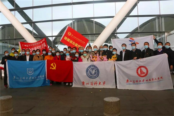 响应党和国家号召,广医系统再度选派医疗队驰援武汉!2月7日下午,医疗队在上午11点接到上级正式通知后用两个多小时迅速集结飞驰武汉,前往武汉协和医院西院区开展重症病人的救治工作。学校党委冉丕鑫书记、陈晓辉副书记、黄健清副校长以及附属医院领导到机场为医疗队助威壮行。