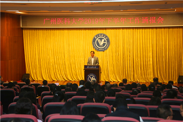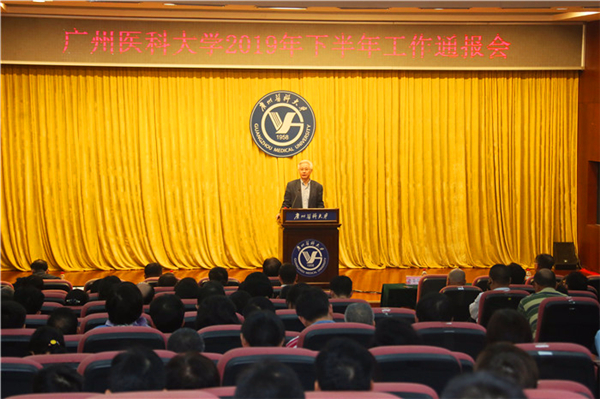广医在线讯 1月9日上午,学校2019年下半年工作通报会在番禺校区召开。学校领导,校本部八级及以上职员、副高职称及以上专业技术人员、教代会代表,直属医院领导班子,附属第六医院和附属顺德医院党政主要领导参加会议。会议由学校党委书记冉丕鑫主持。