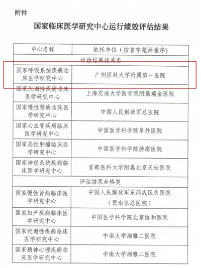 广医在线讯 近日,国家科技部、国家卫建委、后勤保障部、国家药监局联合公布了2019年国家临床医学研究中心运行绩效评估结果。在此次评估中,ac米兰附属第一医院国家呼吸系统疾病临床医学研究中心连续通关4个核心环节,并从21家国家临床医学研究中心中脱颖而出,成为6家优秀建设单位之一,也是华南地区唯一一家获评优秀者。