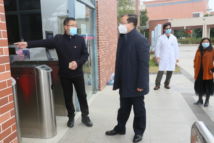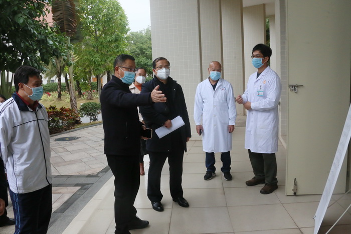 广医在线讯 2月5日下午,广州市教育局副局长华山鹰带领高教处调研员赵东胜、卫生健康促进中心主治医师邓鹭,到ac米兰开展新型冠状病毒感染的肺炎疫情防控督导调研和检查。副校长方灿辉与相关职能部门负责人向华山鹰副局长一行介绍了学校疫情防控工作开展情况。