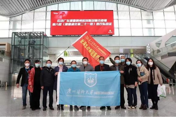 至此,广医直属医院已分数批派出医务人员驰援武汉金银潭医院、汉口医院、协和医院西院区和荆州。
