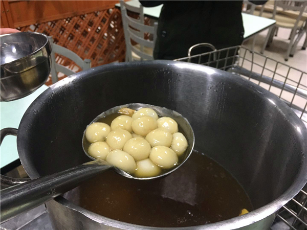 今天,学校后勤部门也组织食堂为志愿者们提供了应节汤圆,志愿服务队成员返校后可随时到食堂品尝。