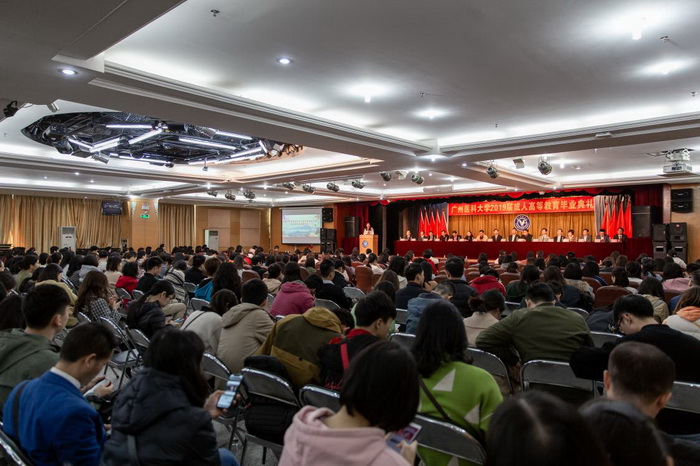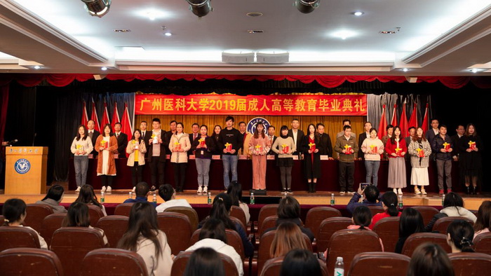 胡丙杰副校长代表学校向全体毕业生表示祝贺。他指出,办好成人高等教育服务社会,与高水平大学建设同频共振,对推动高等教育大众化,服务国家终身教育体系十分重要。学校成人高等教育走质量提升为核心的内涵式发展道路,坚持以创新精神办成教,积极配合国家新医改强基层战略,深入开展教育教学改革,培养了大批实用型人才,为健康广州、健康广东、健康中国作出了贡献。希望同学们拓宽视野,探索人类健康发展的大计;希望同学们保持家国情怀,肩负起救死扶伤的光荣使命,报效祖国服务社会;希望同学们强化责任担当,坚守初心爱岗敬业,脚踏实地行稳致远,在今后的工作和生活中牢记和践行“广医人精神”。