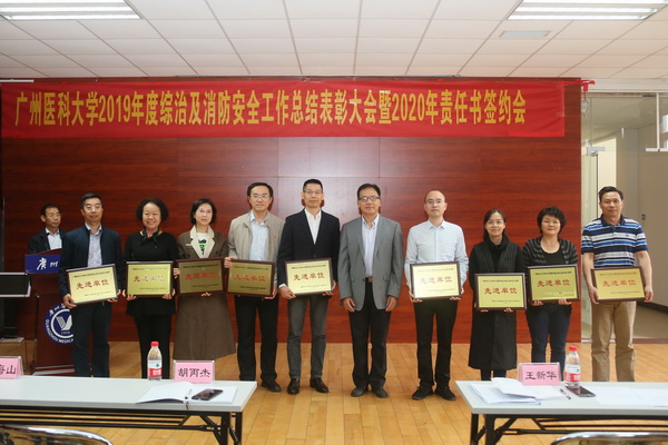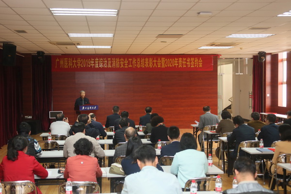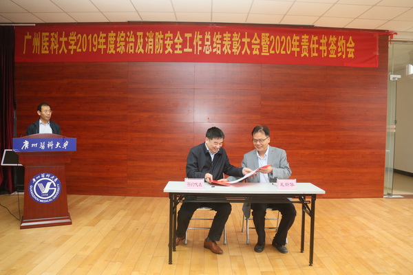 广医在线讯 12月31日下午,学校2019年综治及消防安全工作总结表彰大会暨2020年责任书签约会在番禺校区召开。校长王新华及广医系统各单位、各部门的安全责任人参加会议。会议由副校长胡丙杰主持。