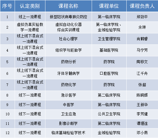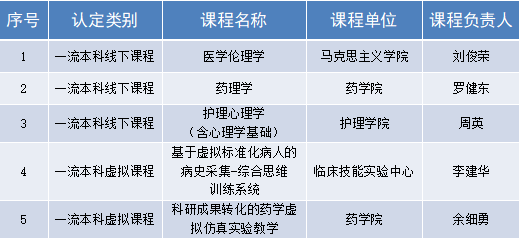 学校国家一流本科课程入选名单(第一批)