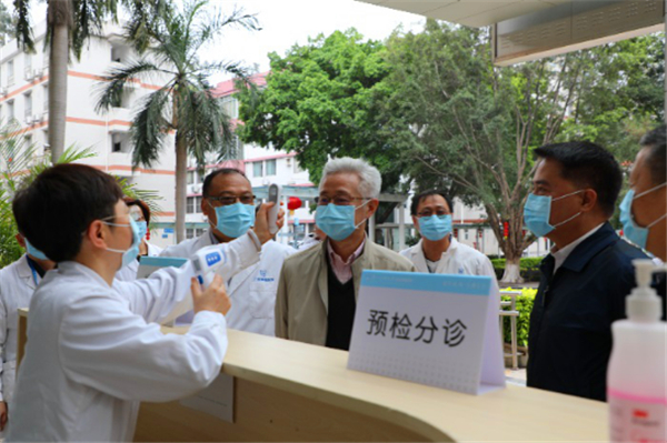 附属第一医院被指定为省市定点收治医院,附属第二医院被指定为市定点收治医院。在两家定点医院,冉书记一行重点巡查了发热门诊接诊流程、重症监护室准备情况,要求两家医院提高政治站位,发扬南山风格,以高度的责任感、使命感打赢这场防控战:首先要做好预检分诊,监控好发热患者;其次要加强对在院学生群体的防控和宣教;三是附属第二医院番禺院区需做好作为备用收治医院的准备。