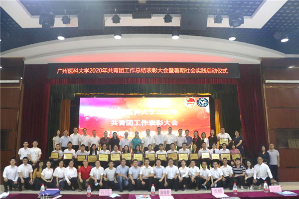 广医在线讯 7月2日,学校在番禺校区学生活动中心演艺厅召开2020年共青团工作总结表彰大会暨暑期社会实践启动仪式。学校党委副书记陈晓辉以及有关职能部门、学院、附属医院、各直属团组织负责人、获奖集体和个人代表等60余人参加会议。大会由学校团委副书记吴欣遥主持。