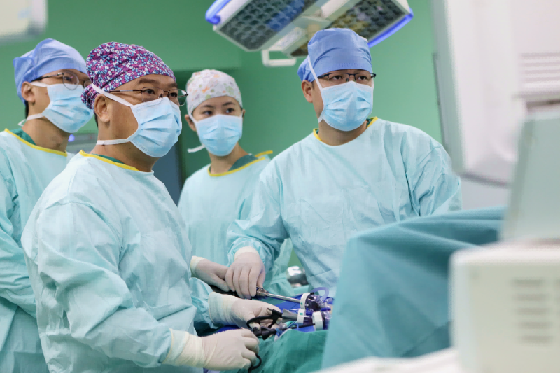 崔书中教授(左二)在做腹腔镜胃癌根治术。