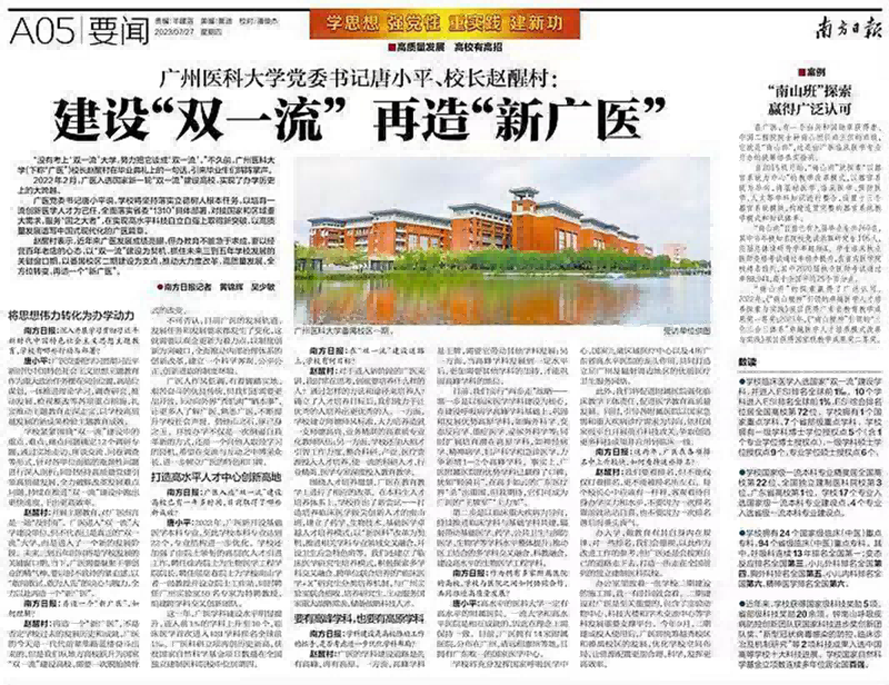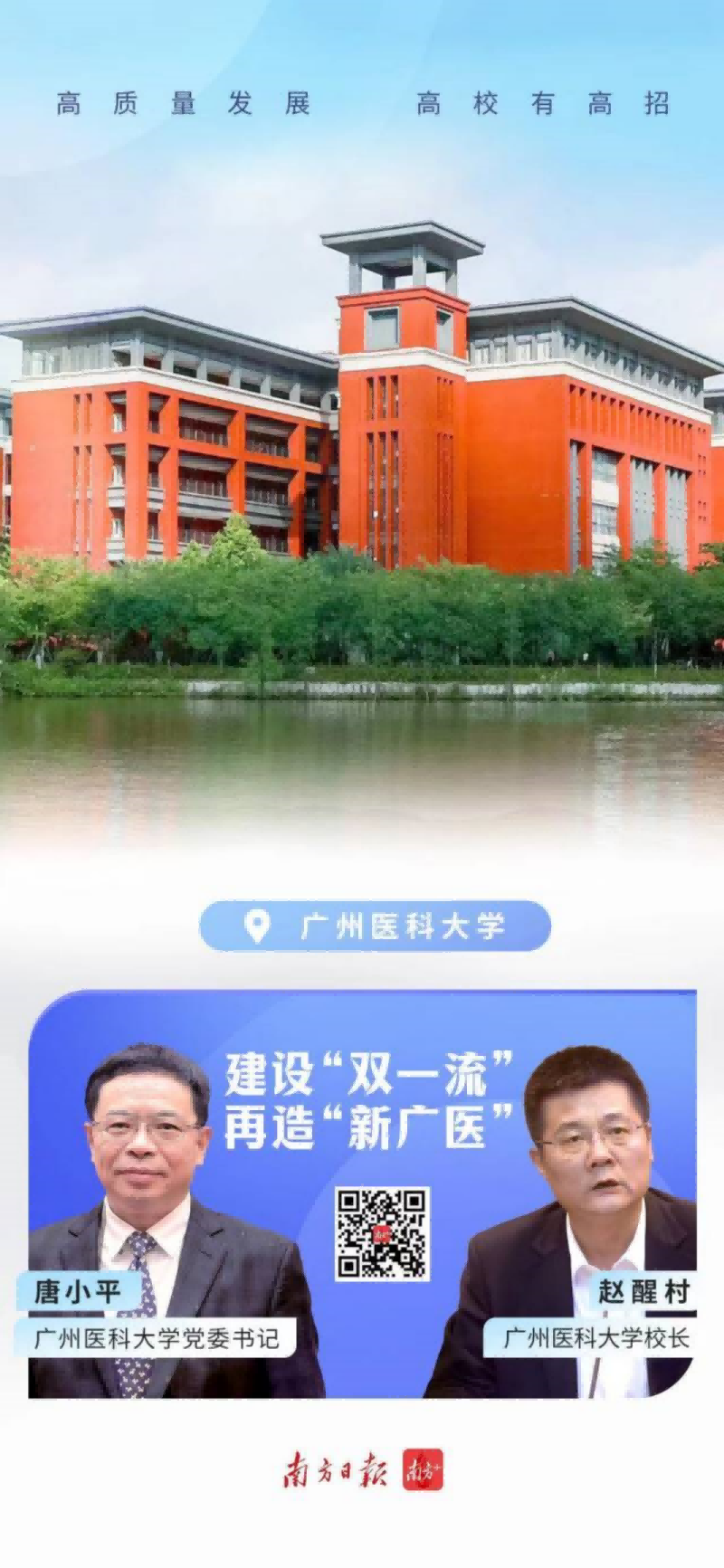 高质量发展是全面建设社会主义现代化国家的首要任务。高质量发展中,大学有何位?大学当何为?近日,ac米兰官方网站党委书记唐小平、校长赵醒村接受南方日报专访,讲述广医如何高质量推进“双一流”建设,再造“新广医”。