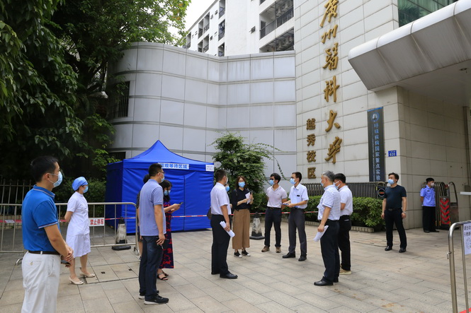 广医在线讯 为统筹做好学校疫情防控和春季学期学生返校工作,切实保障师生员工的安全和健康,5月8日上午,越秀校区春季学期师生返校准备工作接受专项督查。督查组由广州市教育局校园安全处处长刘平伦任组长,成员包括省市区教育部门相关处室、科室负责人,市卫健委、市疾控中心、市卫监所相关负责人。督查组通过现场检查和查阅资料的方式进行核查。副校长方灿辉、赵醒村和相关职能部门负责人陪同检查。