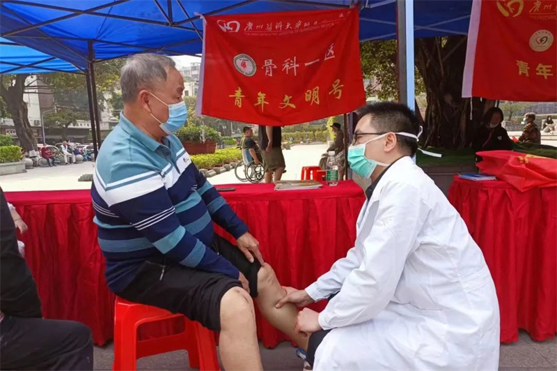 3月3日下午,广医一院南山志愿服务队组织呼吸内科、心内科、老年科、泌尿外科、骨科、儿科、眼科、中医科、药学部、检验科等青年文明号集体来到广州市越秀区五仙观广场,为群众们开展了一场义诊活动。