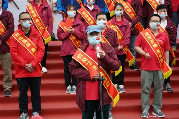 领队张挪富教授从医疗队的组建、ICU的开辟、医疗制度的制定、临时党总支的成立、严格院感防控、科学精准施治、连线大后方会诊、给予患者人文关怀、弘扬抗疫正能量等方面回顾了医疗队在武汉协和西院ICU两个多月以来的工作情况,特别对各级领导和前后方为医疗队提供的坚强保障表示感谢,并表示如果有新的任务,将随时待命毫不犹豫再上战场。
