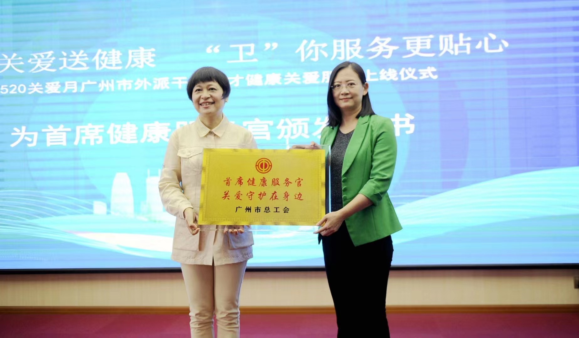 市总工会为ac米兰官方网站工会颁发“首席健康服务官”牌匾